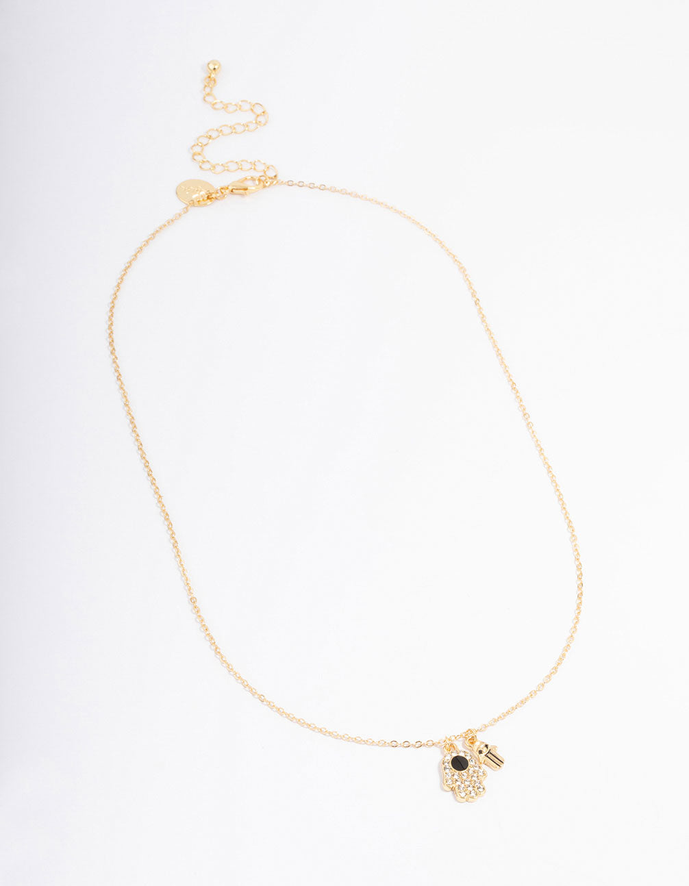 Gold Plated Hamsa Charm Cubic Zirconia Necklace