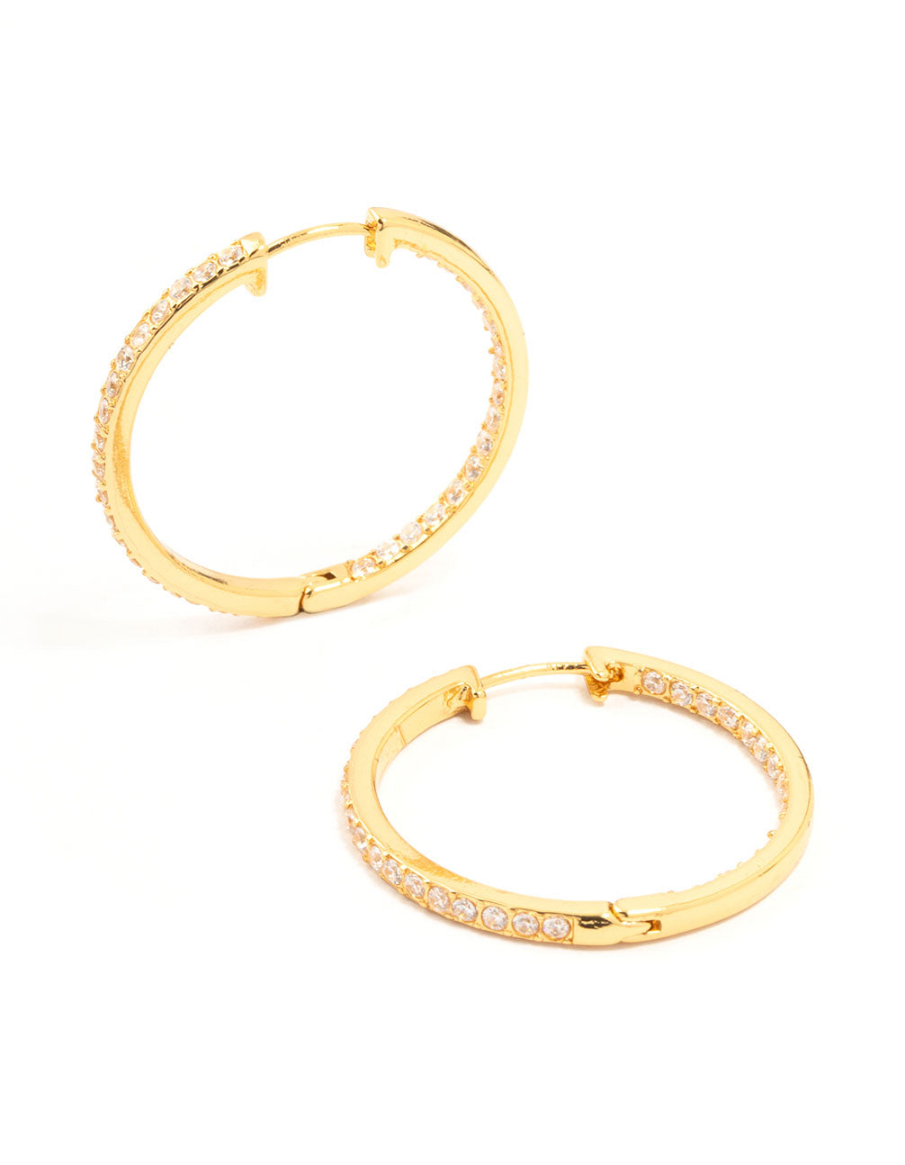 Gold Plated Large Inner Pave Hoop Earrings Gold Plated Large Inner Pave Hoop Earrings Gold Plated Large Inner Pave Hoop Earrings