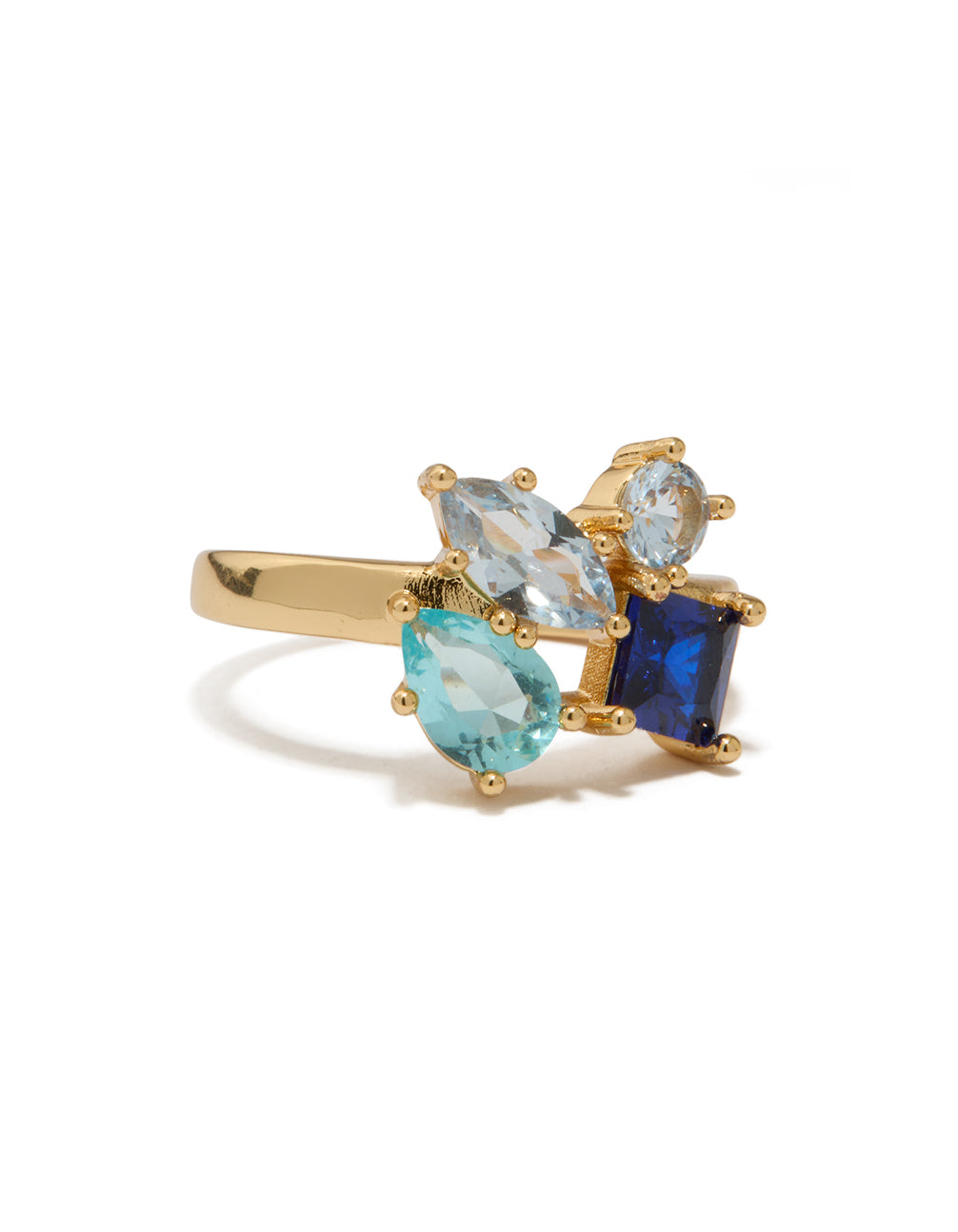 Add a pop of colour to your accessory game with this Gold Plated Light & Dark Blue Cubic Zirconia Cluster Ring. This dazzling ring features a playful mix of light and dark blue cubic zirconia crystals in a stunning cluster design, all set on a sleek gold-plated band. Perfect for adding sparkle to any outfit, this ring works beautifully for both casual outings and dressy occasions. Pair it with a flowy dress for brunch or add it to your evening ensemble for an extra touch of glamour. A must-have for jewellery lovers, it's an eye-catching blend of chic and playful, making it the ultimate statement piece for any collection.