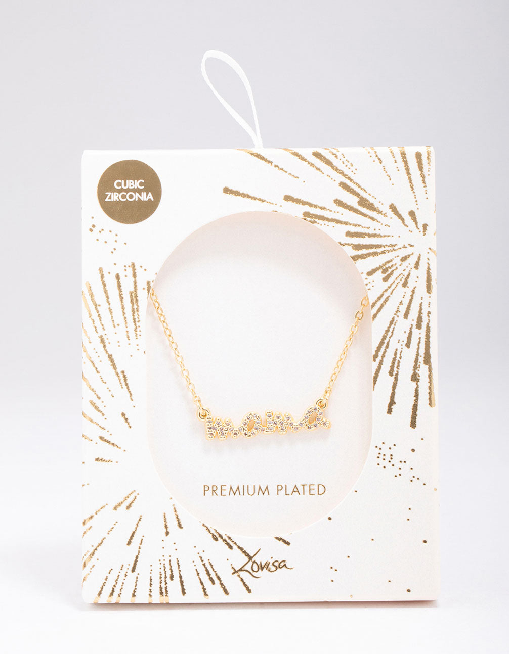 Gold Plated Mama Cubic Zirconia Pendant Necklace