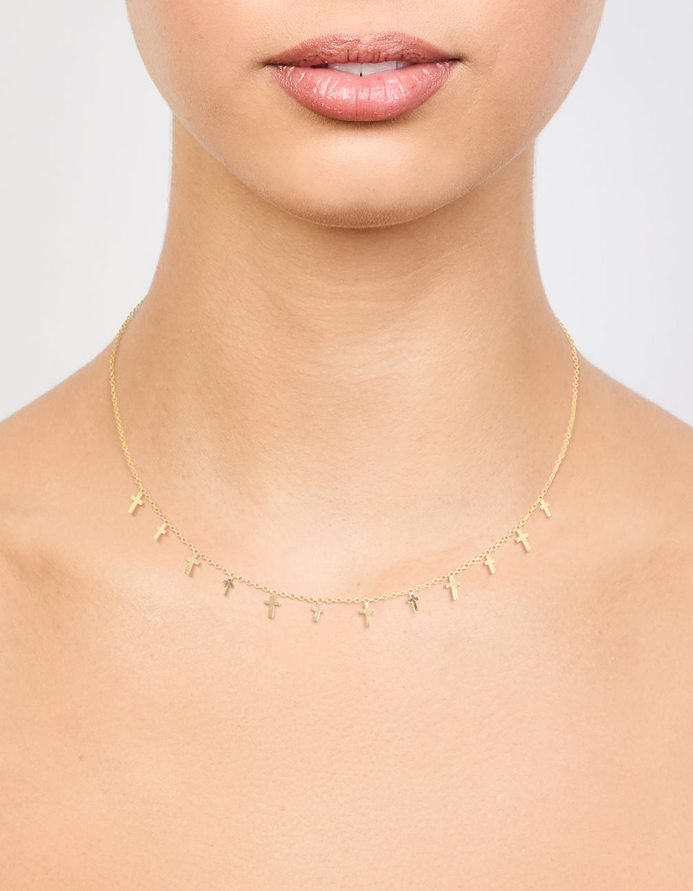 Elevate your everyday look with this Gold Plated Mini Cross Charm Necklace, a must-have piece of jewellery for effortless style. This dainty pendant necklace features mini cross charms, delicately crafted and plated in gold for a timeless finish. Perfect for adding a subtle touch of elegance, it's ideal for layering with other necklaces or wearing solo for a minimalist vibe. Whether you're heading to brunch, a casual day out, or dressing up for a night with friends, this versatile necklace pairs beautifully with everything from a cosy jumper to your favourite little black dress. A chic and meaningful accessory, it's a go-to for any occasion.
