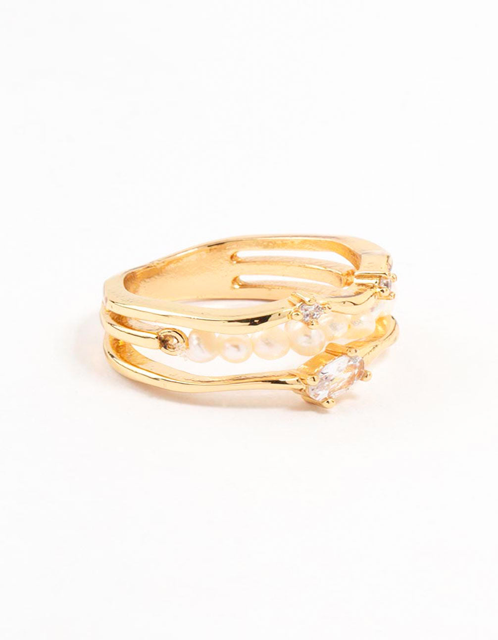 Enhance your style with our enchanting gold-plated ring adorned with three lustrous pearls. Its elegant, stackable design seamlessly blends sophistication with modern flair. Slip it on to elevate your ensemble.