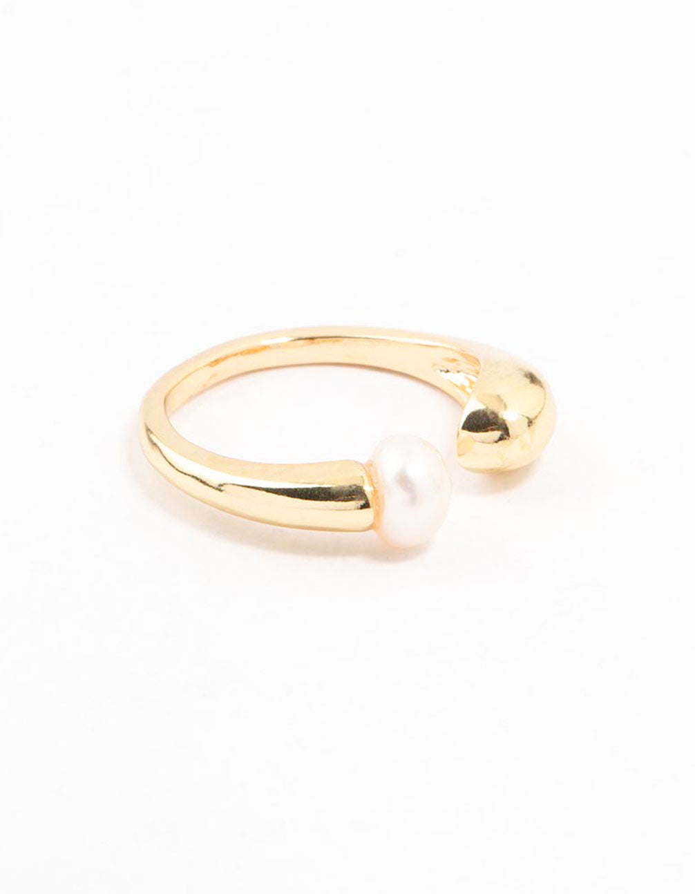 Elevate your look with this captivating Gold Plated Open Pearl Ring. This stylish ring features a stunning open design that showcases a lustrous pearl center. Effortlessly chic, this versatile ring adds refined elegance to any ensemble.