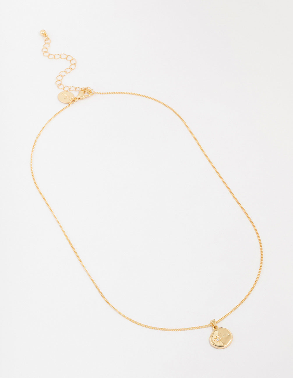 Gold Plated Brass Organic Round Star Pendant Necklace
