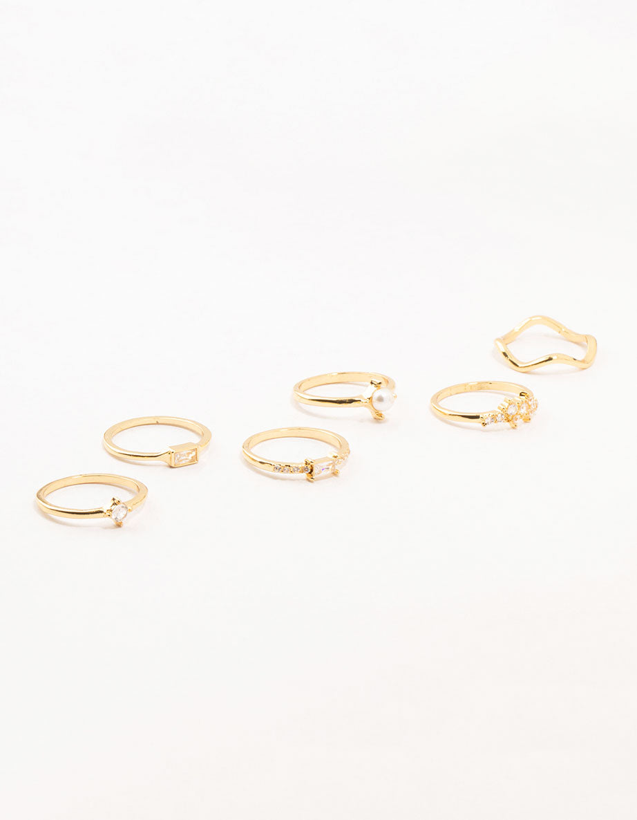 Gold Plated Pearl Cluster Baguette Rings 6-Pack