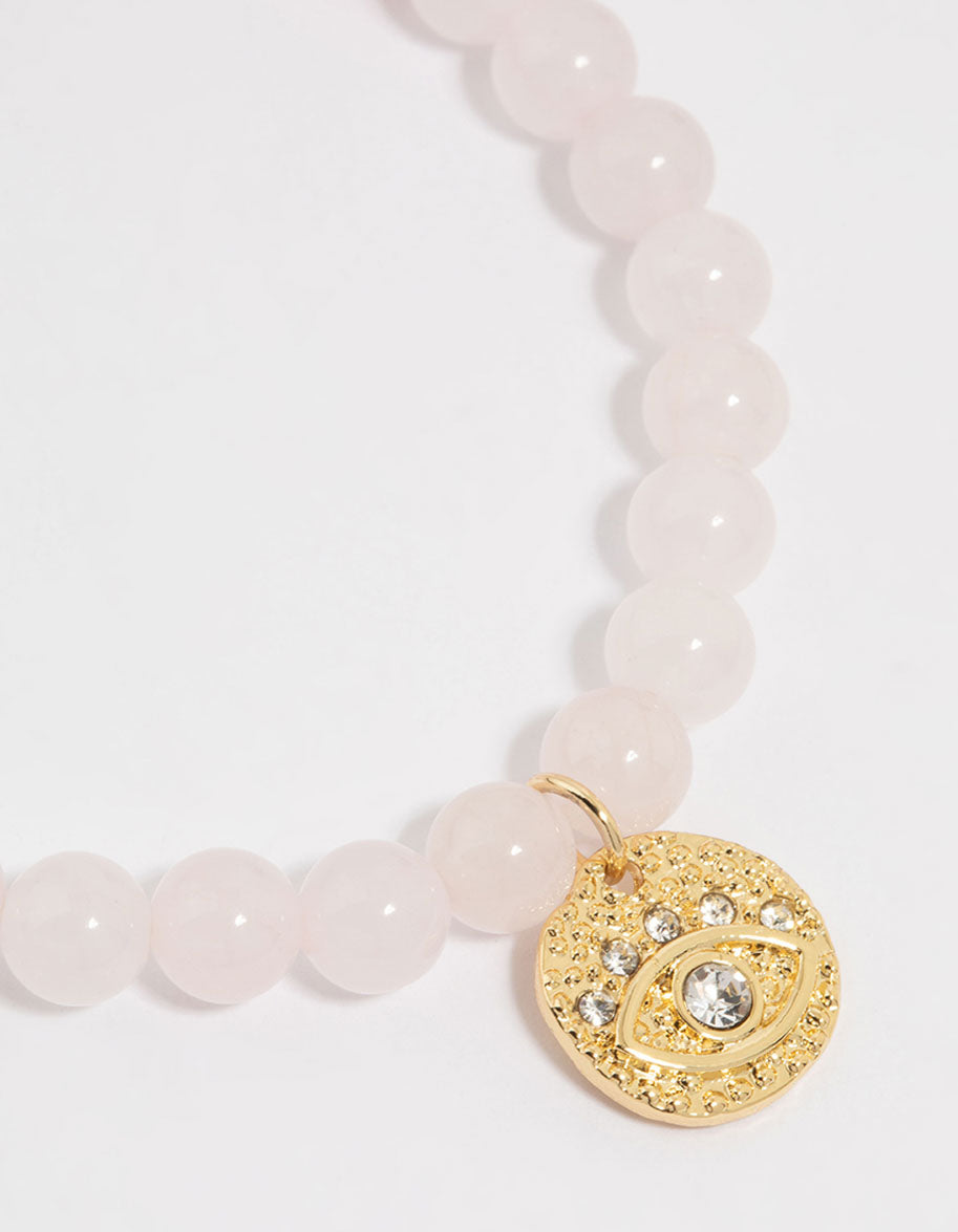 Bring more love into your life with this stunning stretch bracelet! Featuring rose quartz beads and gold-plated eye detail, it's perfect for self-love, improving relationships, and healing.
