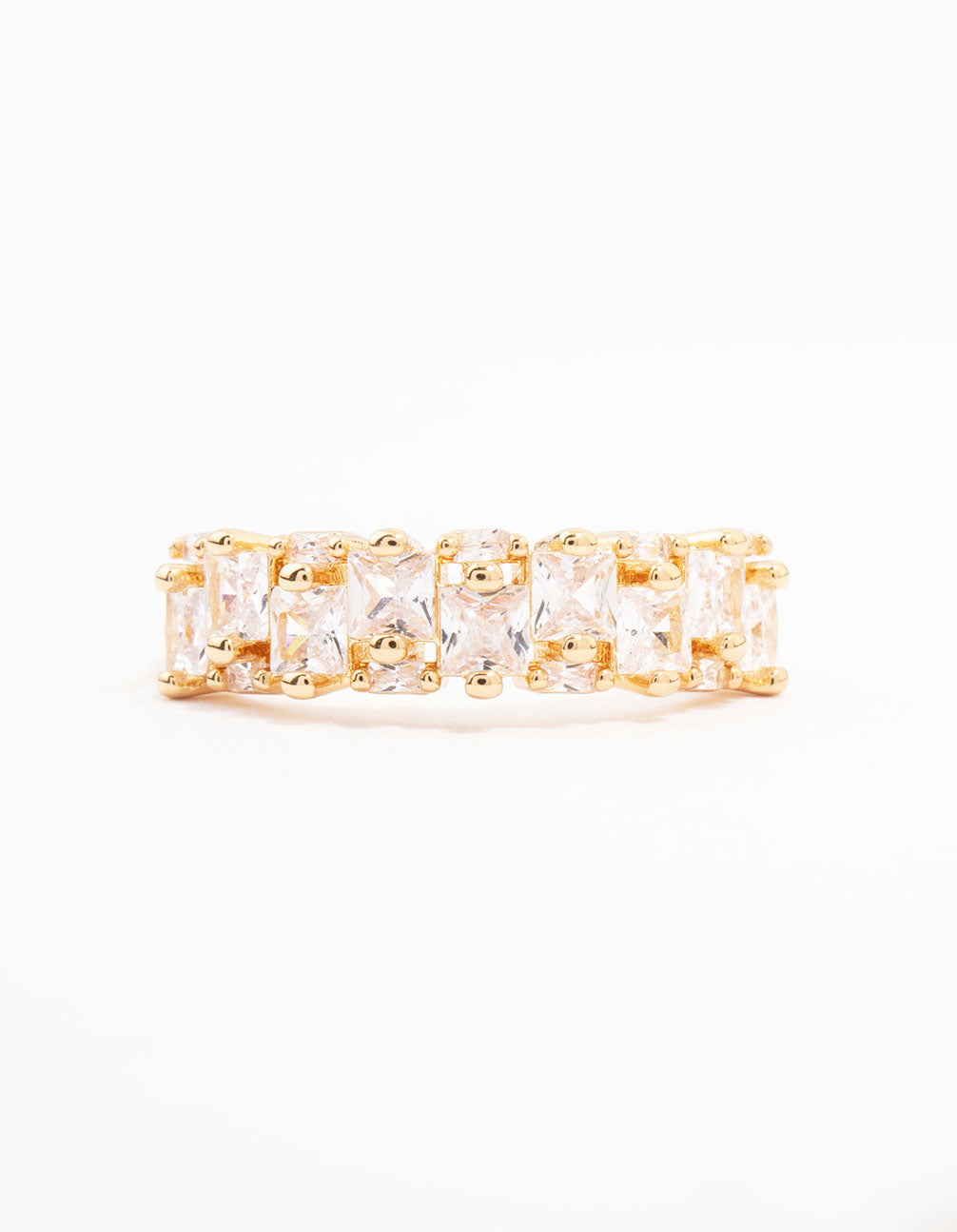 Gold Plated Staggered Cubic Zirconia Band Ring