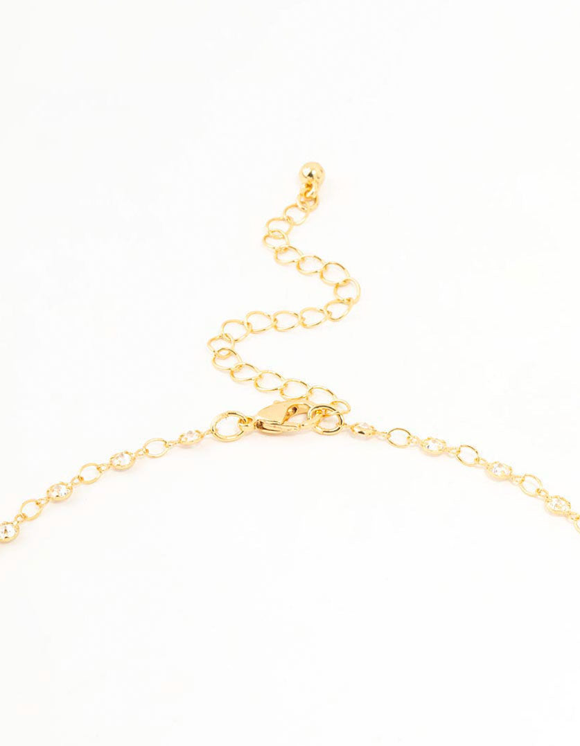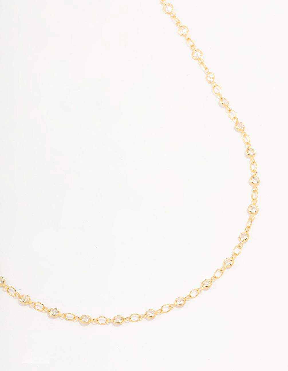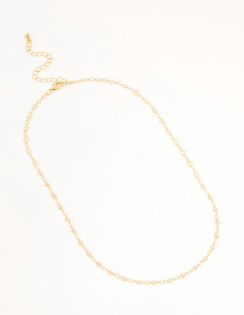 This statement gold plated chain link necklace features flat crystals for some shine and sparkle. This necklace an effortless way to dress up any outfit with just the right amount of shine and glitz. Ideal for all day wear and as a wardrobe staple.