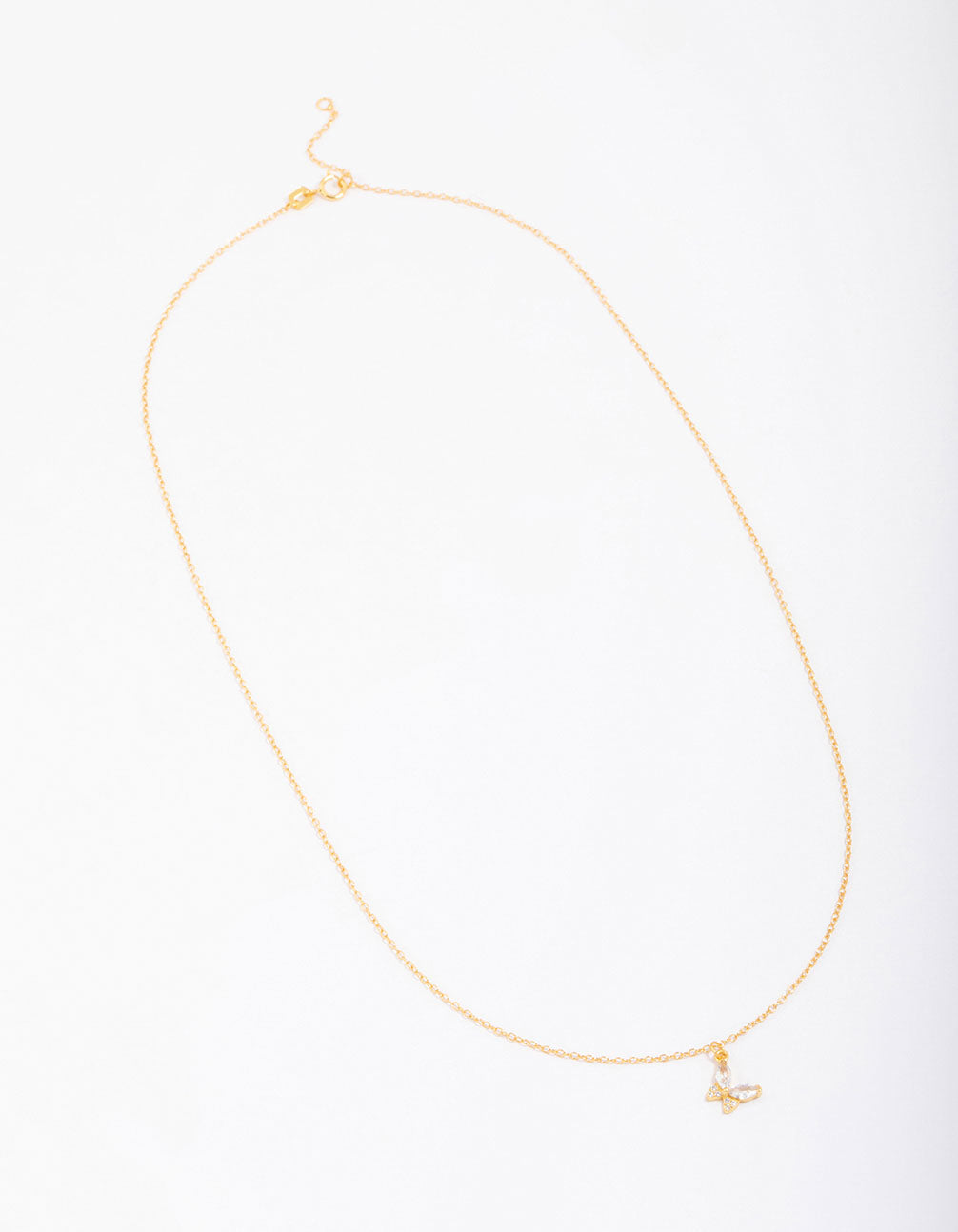 Gold Plated Sterling Silver Cubic Zirconia Butterfly & Angel Pendant Necklace