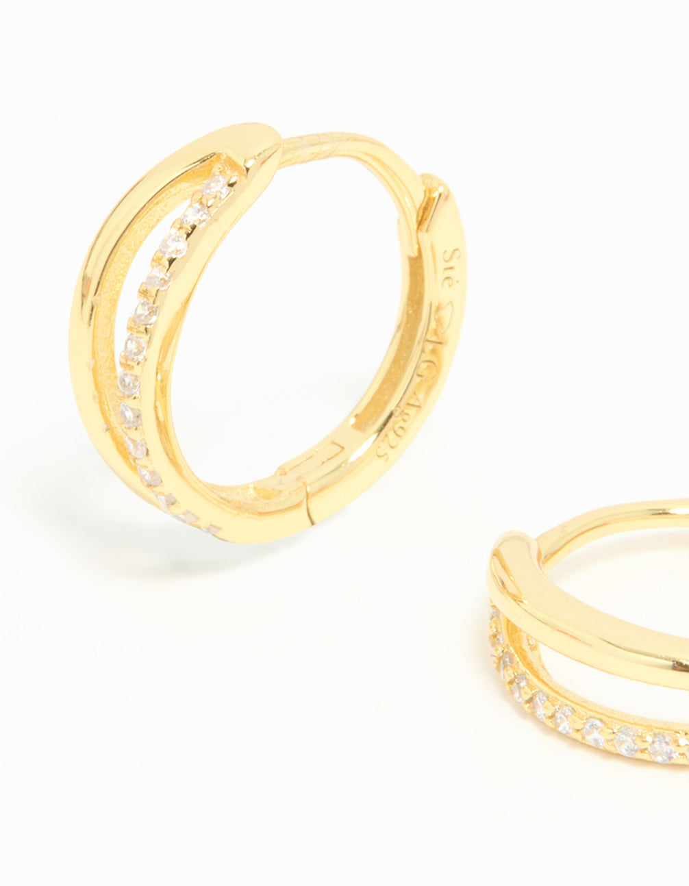 Elevate your everyday style with these Gold Plated Sterling Silver Cubic Zirconia Double Hoop Earrings. Perfect for layering or making a subtle statement, these double hoops offer a modern twist on a classic design. Crafted from sterling silver with gold plating, they sparkle with cubic zirconia crystals for just the right amount of shimmer. Whether you're dressing up for a night out or adding a polished touch to your casual look, these versatile hoop earrings are your go-to accessory. Pair them with a sleek blazer for a chic office vibe or wear them with your favourite dress for a weekend brunch. These earrings are lightweight, stylish, and effortlessly cool – perfect for any occasion!