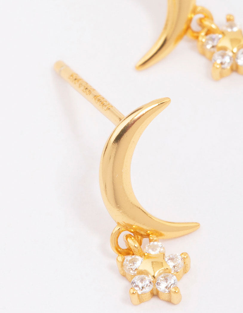 Gold Plated Sterling Silver Moon & Star Stud Earrings Gold Plated Sterling Silver Moon & Star Stud Earrings Gold Plated Sterling Silver Moon & Star Stud Earrings