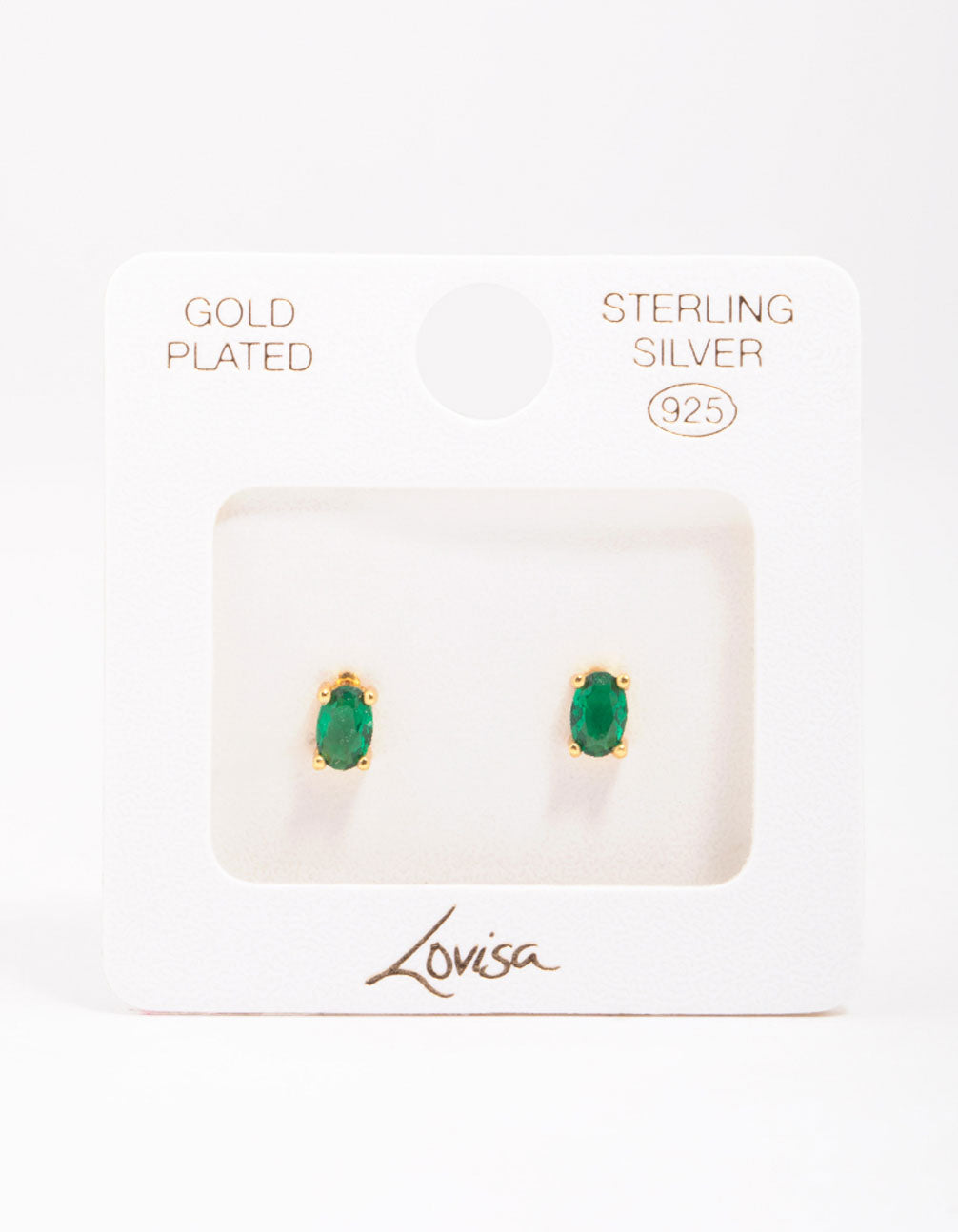 For a premium addition to your stack, style these simple emerald stud earrings. These studs are crafted with genuine sterling silver and plated with real gold, perfect for styling in your everyday rotation.