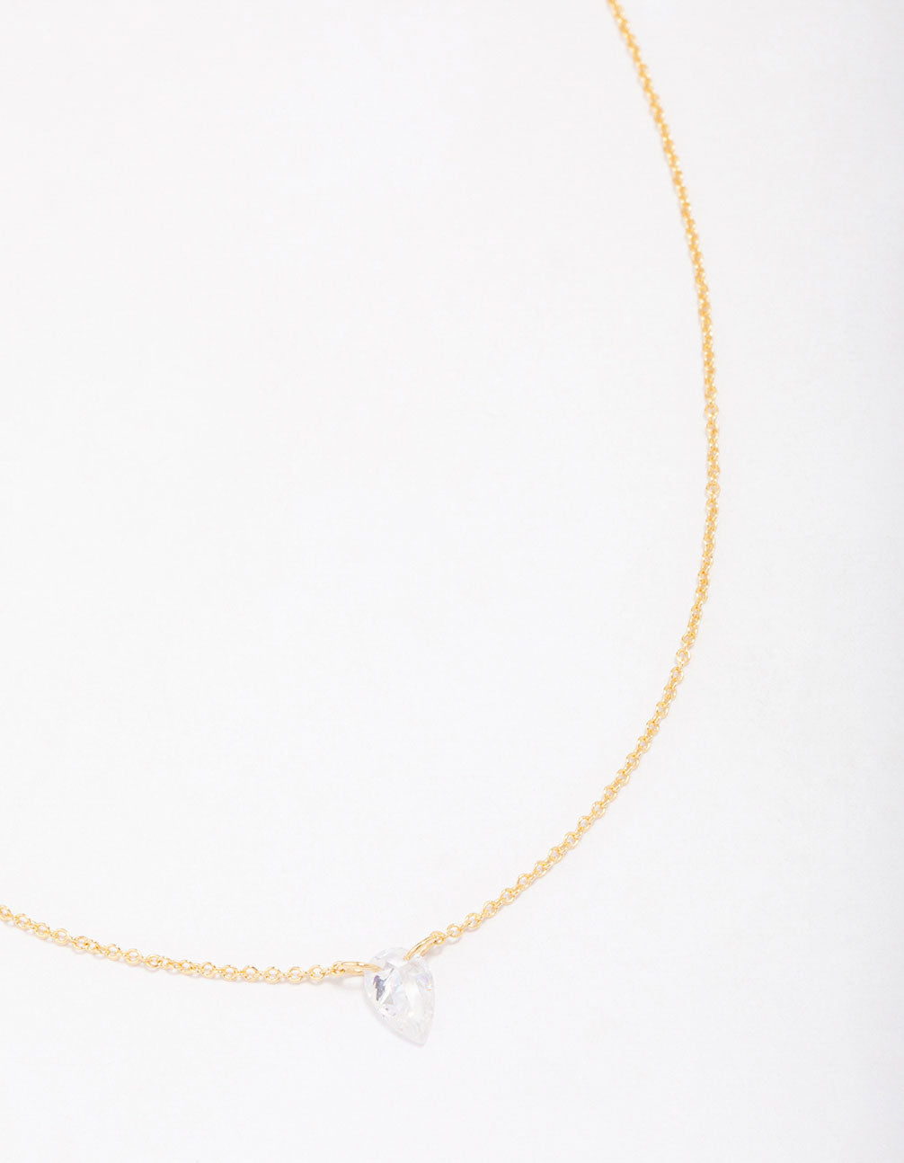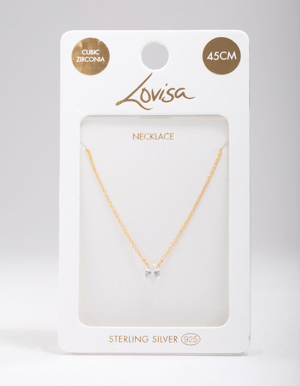 Gold Plated Sterling Silver Pear Cubic Zirconia Chain Necklace
