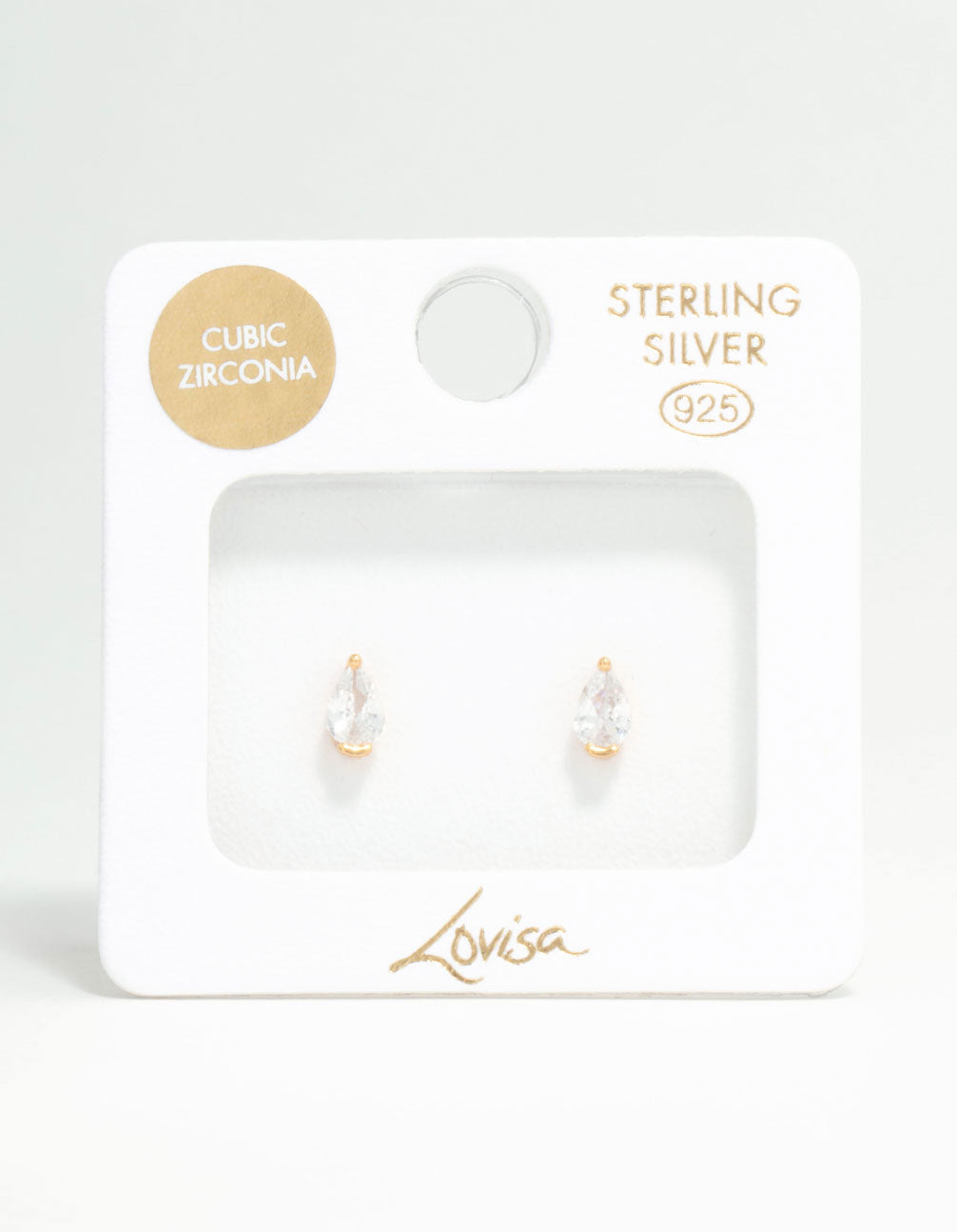 Gold Plated Sterling Silver Pear Shaped Diamante Stud Earrings