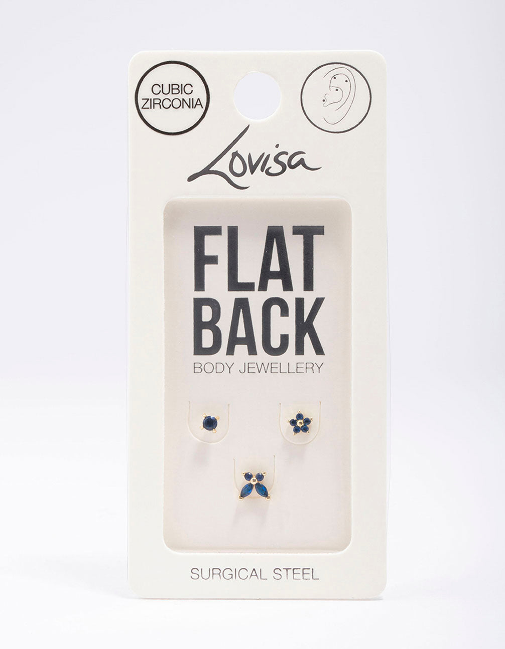 Gold Plated Surgical Steel Butterfly & Flower Flat Back 3-Pack Gold Plated Surgical Steel Butterfly & Flower Flat Back 3-Pack Gold Plated Surgical Steel Butterfly & Flower Flat Back 3-Pack