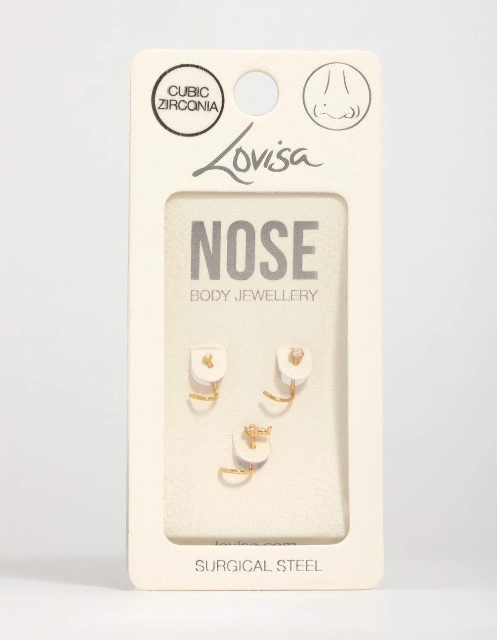 Add a touch of sparkle and charm to your look with this Gold Plated Surgical Steel Cubic Zirconia Butterfly Nose Piercings Pack. This gorgeous set of nose jewellery includes a delicate cubic zirconia butterfly nose stud, a sleek micro cubic zirconia stud, and a bold larger cubic zirconia stud—all crafted from durable surgical steel and finished with a luxurious gold plating. Perfect for everyday wear or special occasions, these nose piercings bring a mix of playful and elegant vibes to your style. The butterfly stud adds a whimsical, feminine flair, while the sparkling cubic zirconia gemstones catch the light beautifully. Whether you're pairing them with a casual outfit or something more glamorous, these nose piercings are versatile, stylish, and a must-have for anyone looking to elevate their piercing collection!