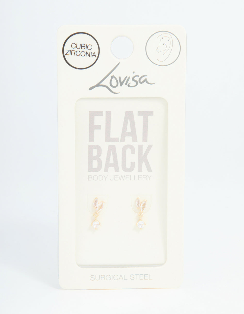 Add some sparkle with these gold-plated surgical steel flat back studs! Featuring mixed shape cubic zirconia crystals, they're perfect for a unique ear stack. Ideal for everyday wear or dressing up—mix and match for a must-have look!