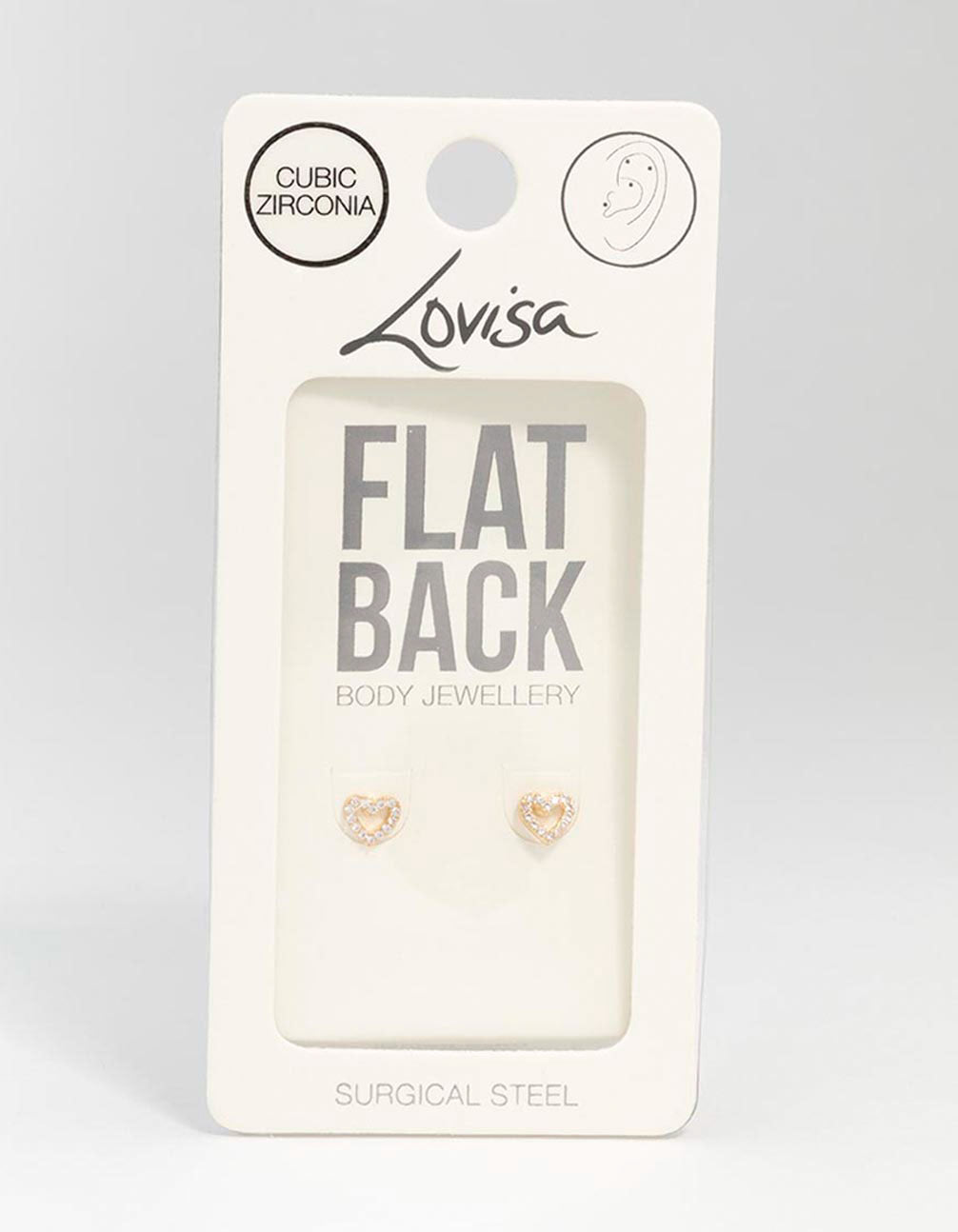 Gold Plated Surgical Steel Cubic Zirconia Open Heart Flat Back 2-Pack