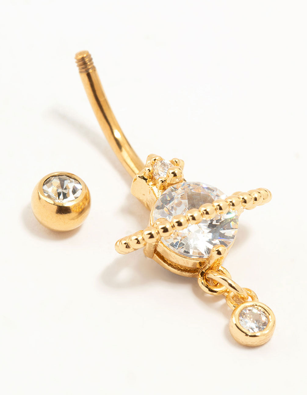 Gold Plated Surgical Steel Cubic Zirconia Planet Belly Bar