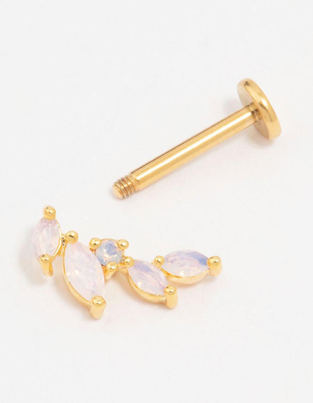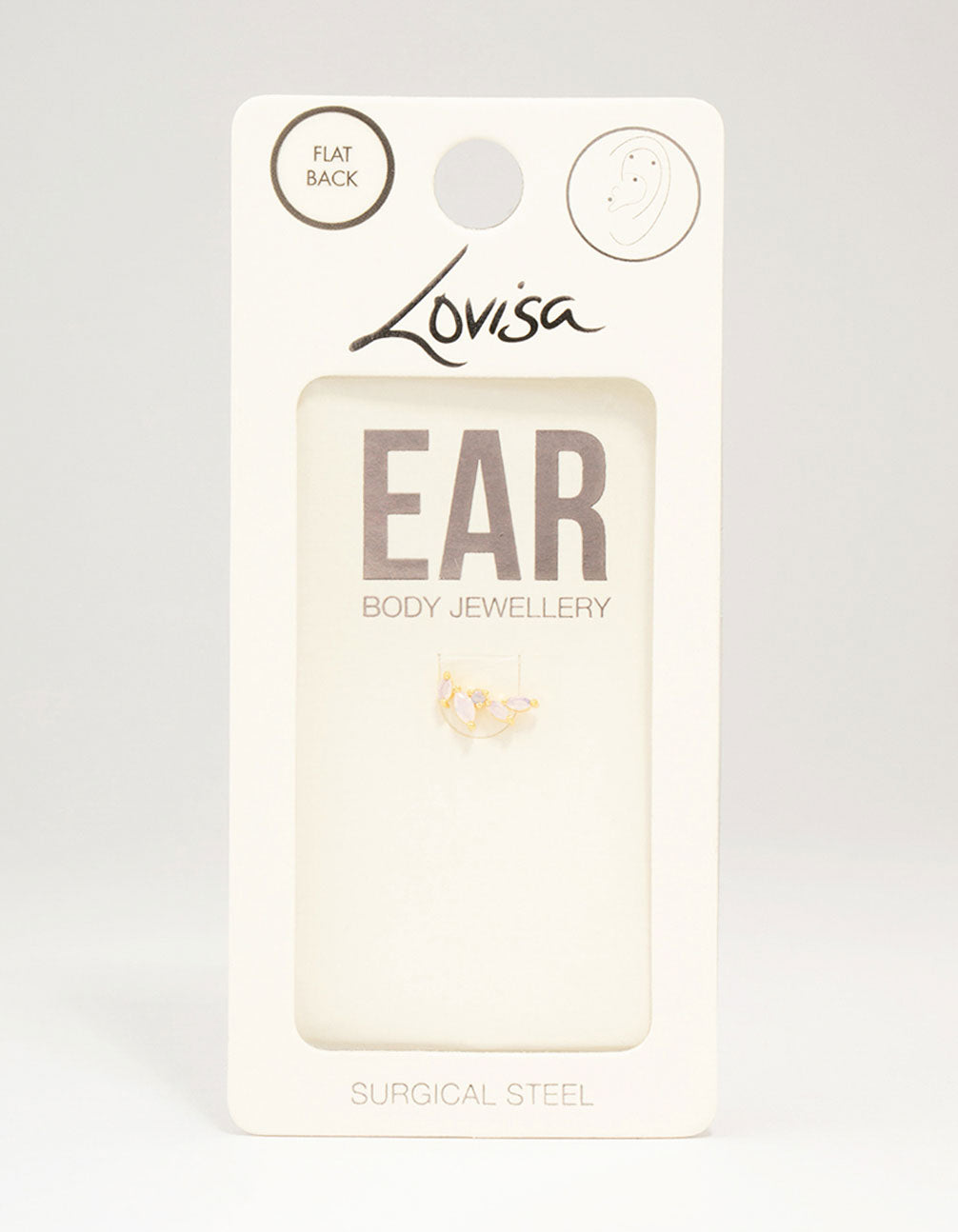 Personalise your stack with our selection of premium, surgical steel piercing jewellery. This flat back piercing is plated with real gold, and features clusters of marquise crystals for a hint of sparkle.