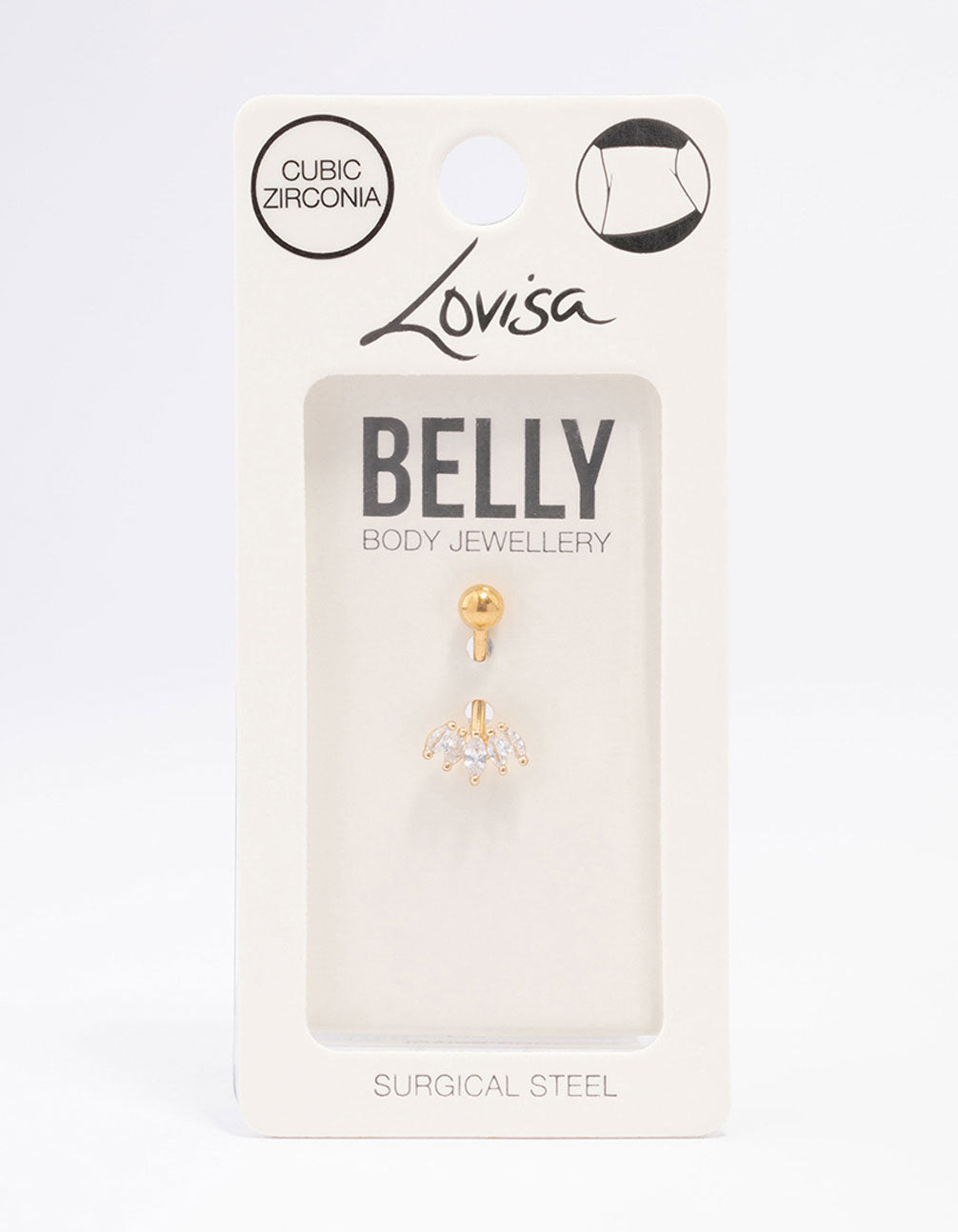 Gold Plated Surgical Steel Mini Marquise Fan Belly Ring Gold Plated Surgical Steel Mini Marquise Fan Belly Ring Gold Plated Surgical Steel Mini Marquise Fan Belly Ring
