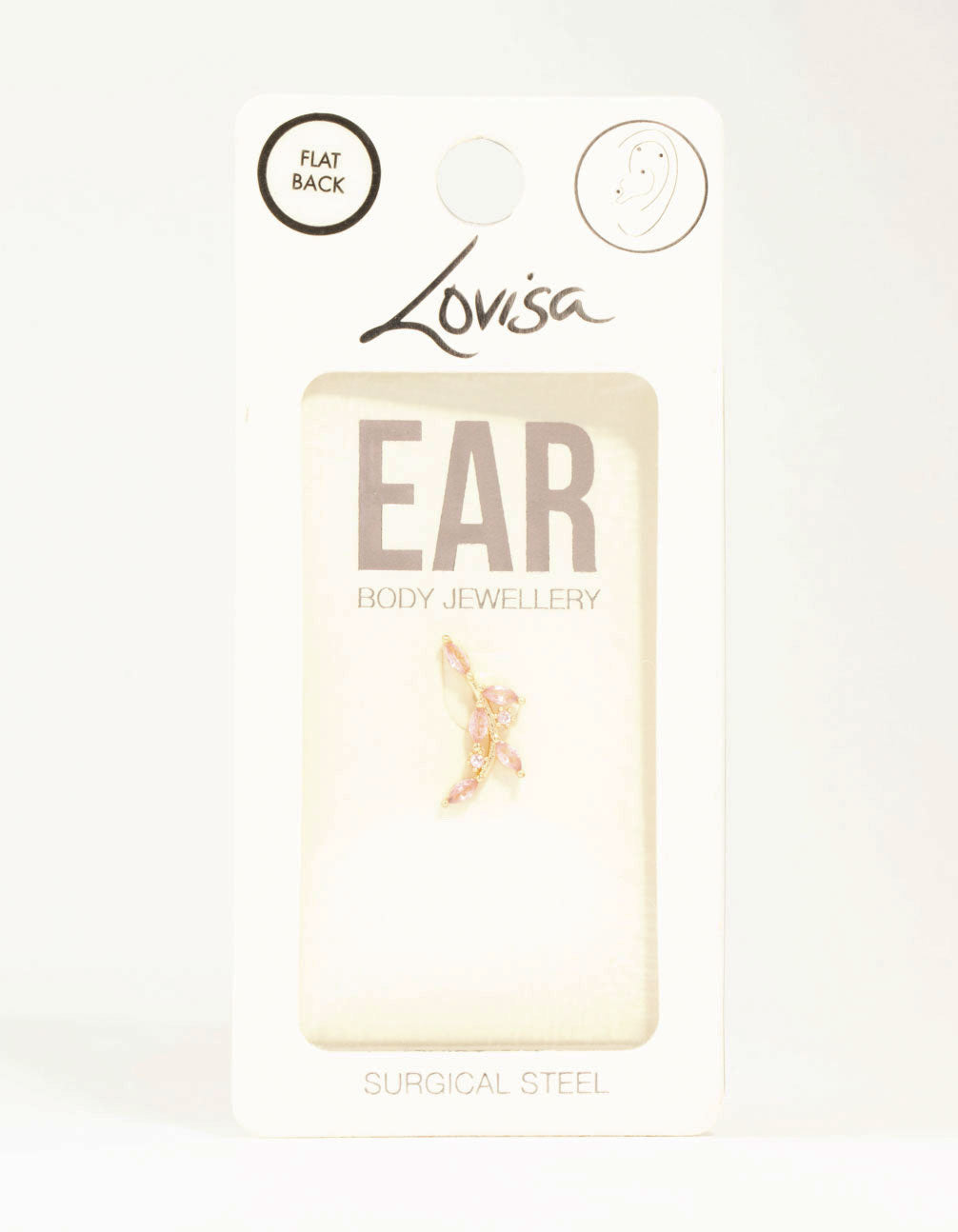 Add a pretty pink touch with this single flat back stud! Crafted from gold-plated surgical steel and featuring a pink diamante accented vine, it's perfect for some pink glam
