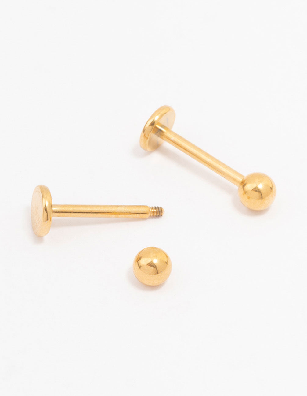 Elevate your style with these classic gold plated surgical steel ball flat back studs. They offer a luxurious look with durable stainless steel construction and comfortable flat back posts. Ideal for daily wear, perfect for stacking or wearing alone.