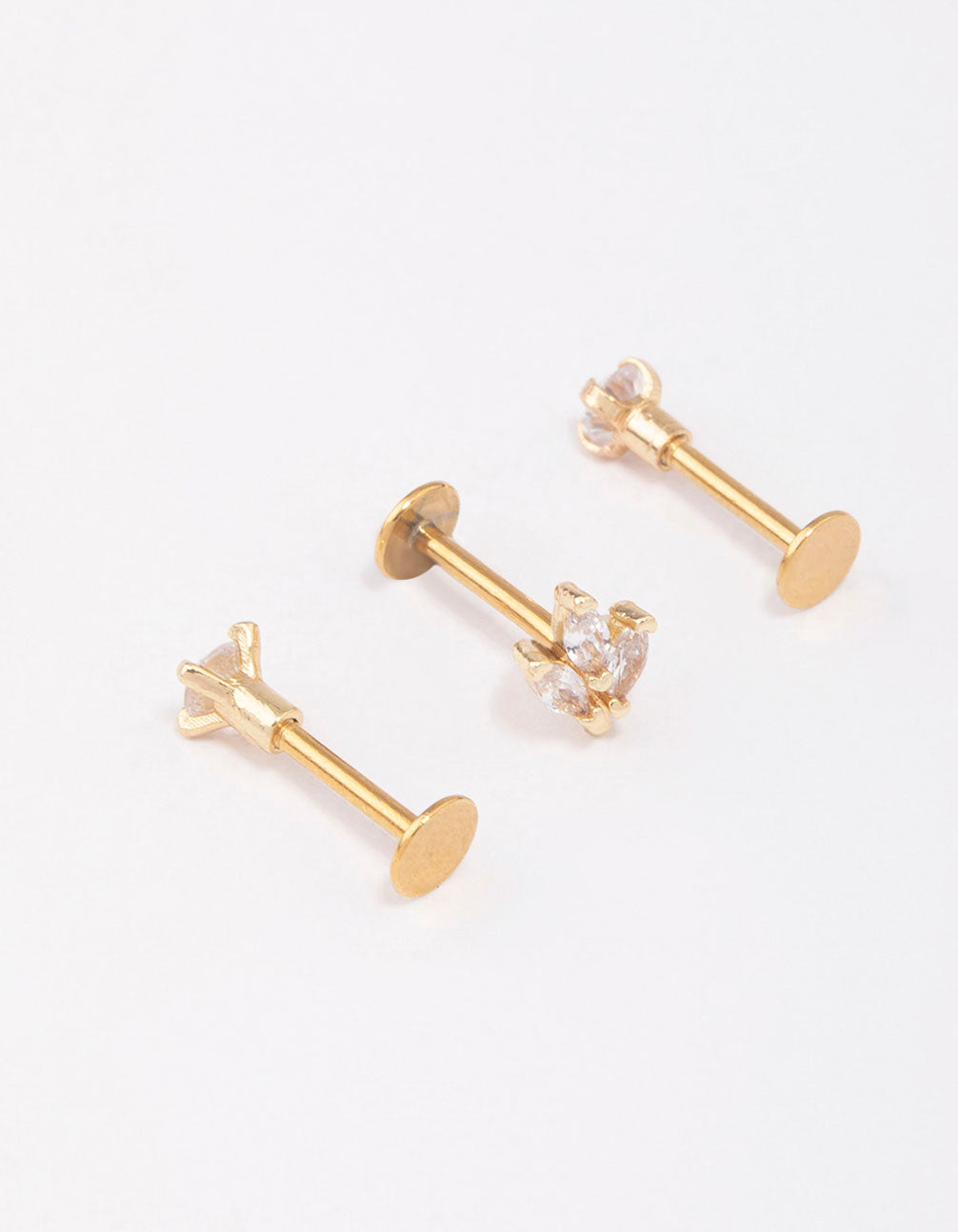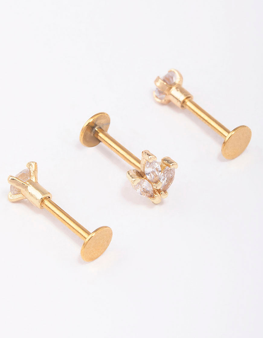 Gold Plated Surgical Steel Triangular Leaf Flat Back 3-Pack
