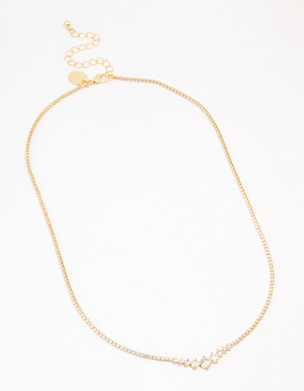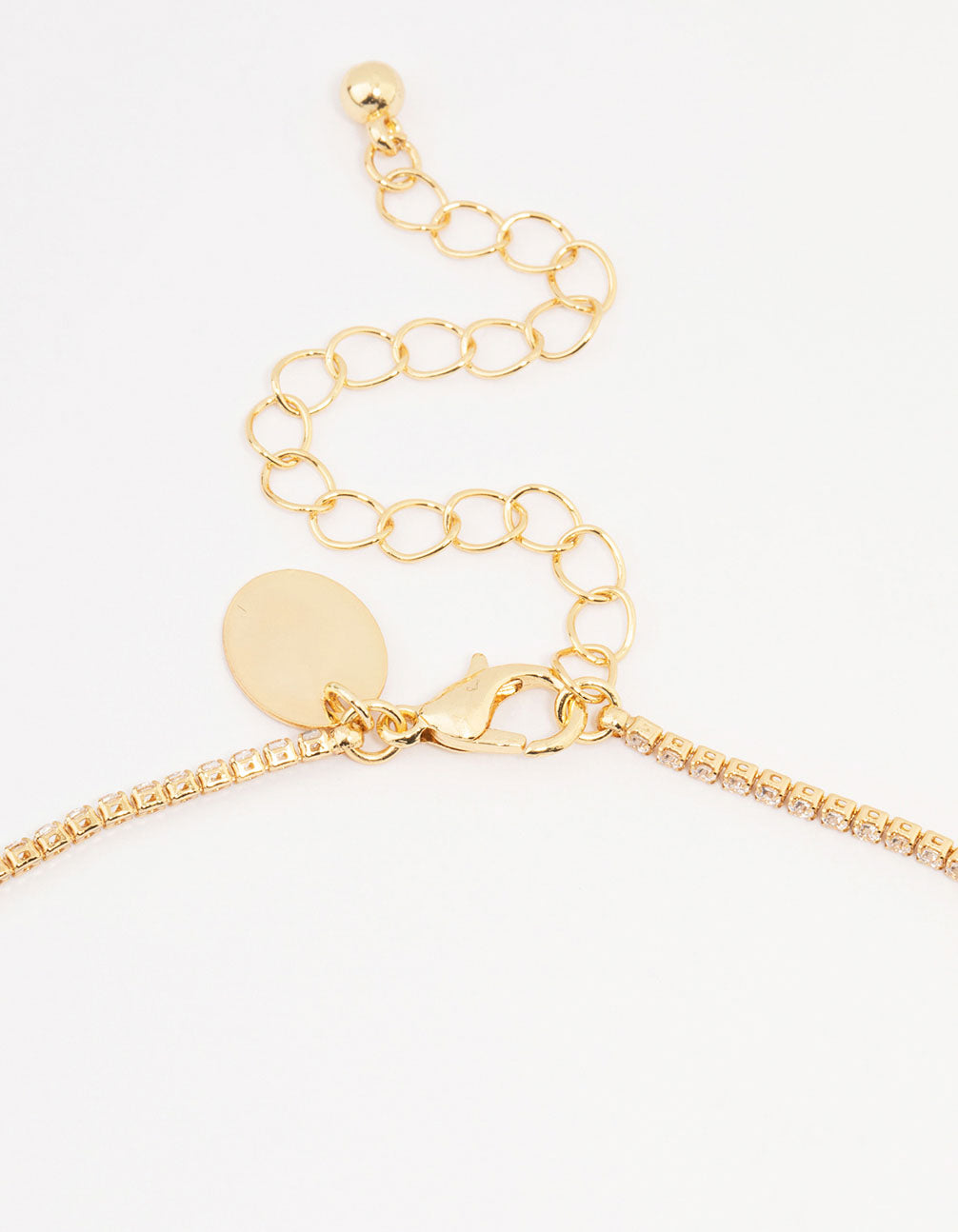 Add an elegant touch to your neckline with this gold plated necklace. This dainty chain necklace features a cubic zirconia encrusted chain. Perfect for adding a touch of glamour to your stack!
