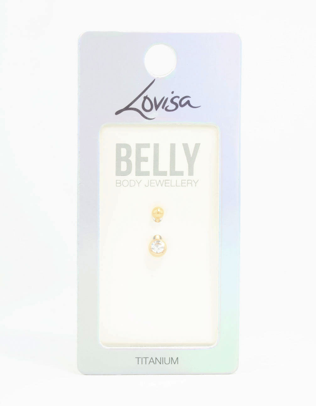 Add some sparkle to your look with this gold-plated titanium belly bar! Featuring a bezel set crystal and titanium base, it's durable, hypoallergenic, and perfect for any occasion.