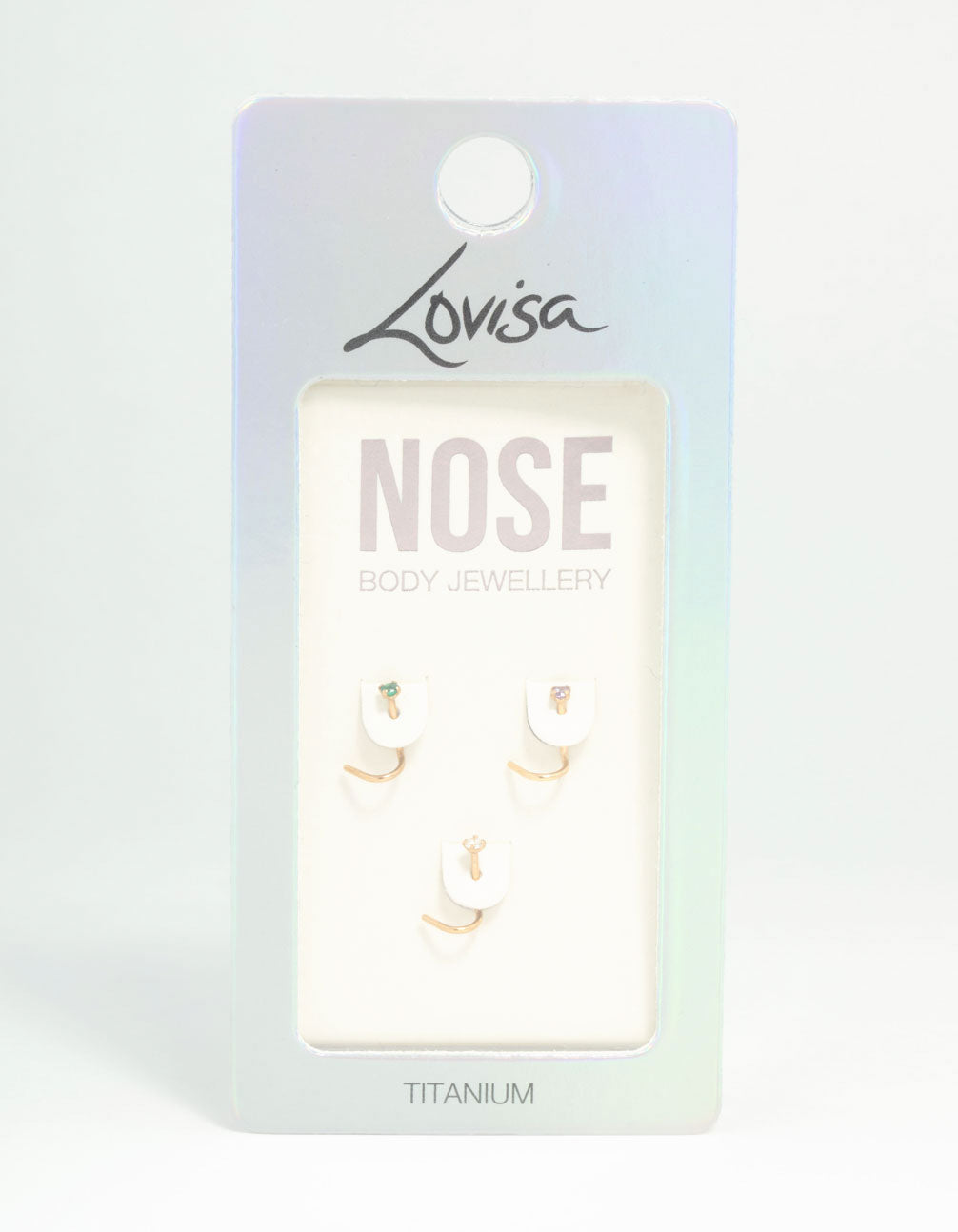 Meet the ultimate trio for your nose piercing needs. This pack includes three stunning purple, green, and silver diamante nose studs. Crafted from gold-plated titanium, they are perfect for sensitive skin and have a sleek, minimalist design ideal for everyday wear.