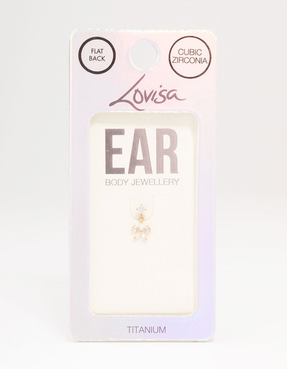 Gold Plated Titanium Cubic Zirconia Bow Flat Back