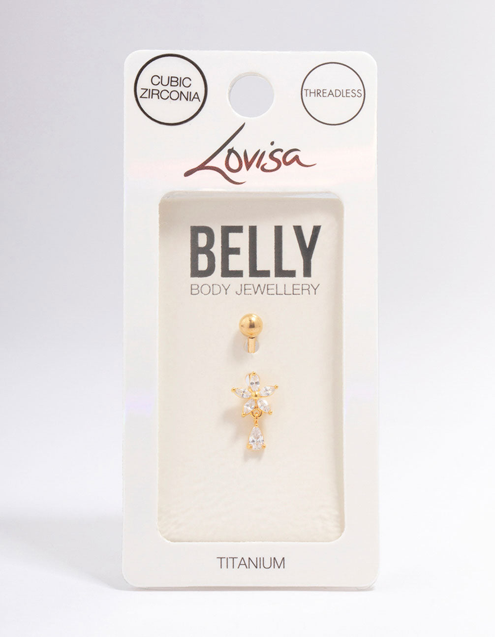 Gold Plated Titanium Cubic Zirconia Flower Pear Belly Piercing