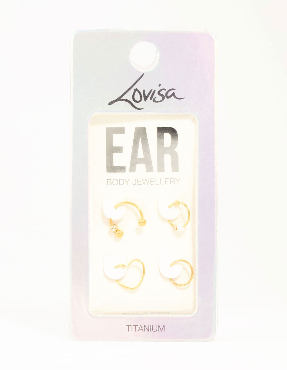 Step up your piercing game with this fab 4-pack of gold-plated titanium heart nose rings! Perfect for your nose or lobes, these chic designs will have you sparkling in style.