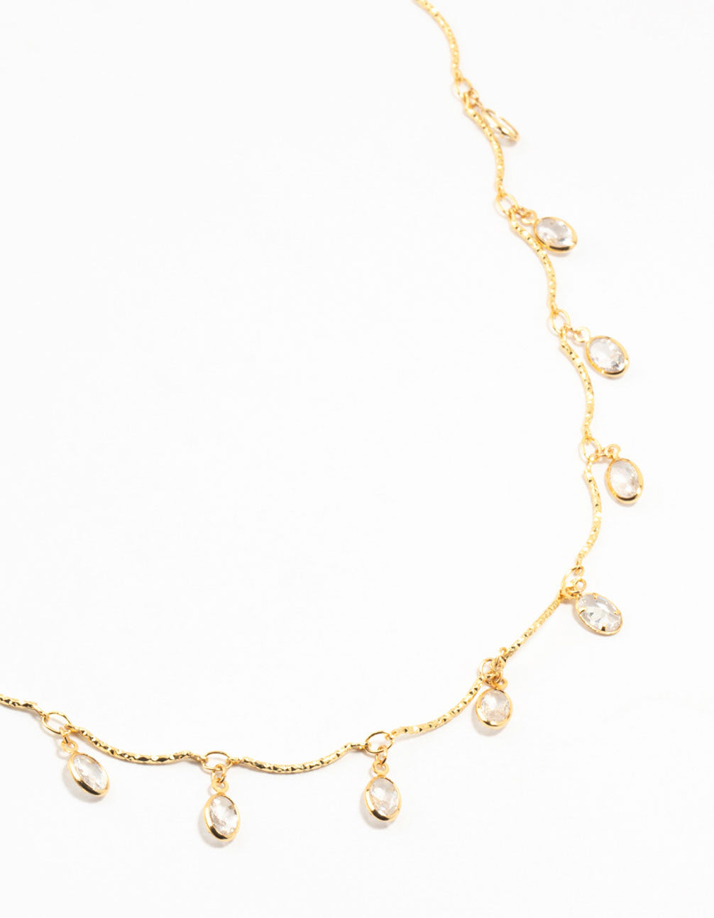 Brimming with enchantment, this Gold Plated Brass Vine Crystal Charm Necklace casts a spell of elegance. The delicate silver-toned chain gracefully supports a constellation of sparkling crystals, creating a look that's both refined and whimsical.