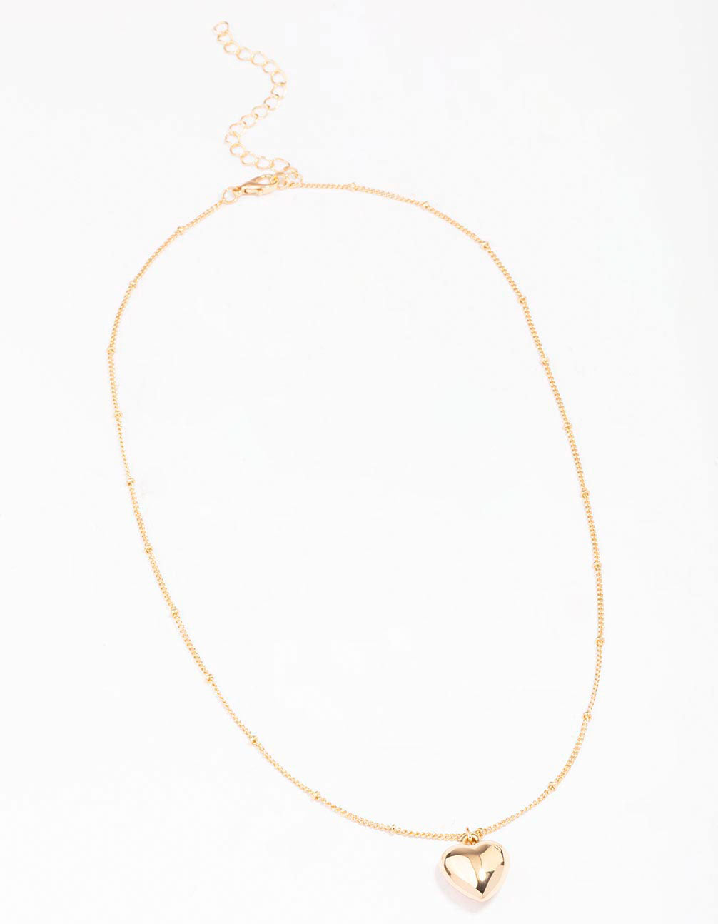 Gold Puffy Heart Ball Chain Pendant Necklace
