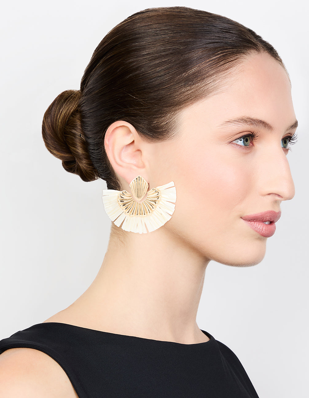 Gold Raffia Fan Stud Earrings