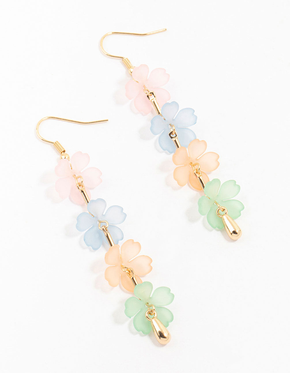 Gold Multicoloured Flower Strand Drop Earrings