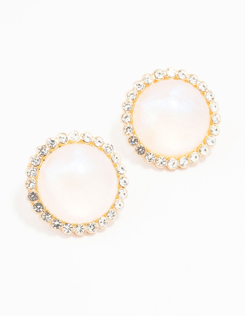 Gold Round Diamante Pearl Stud Earrings