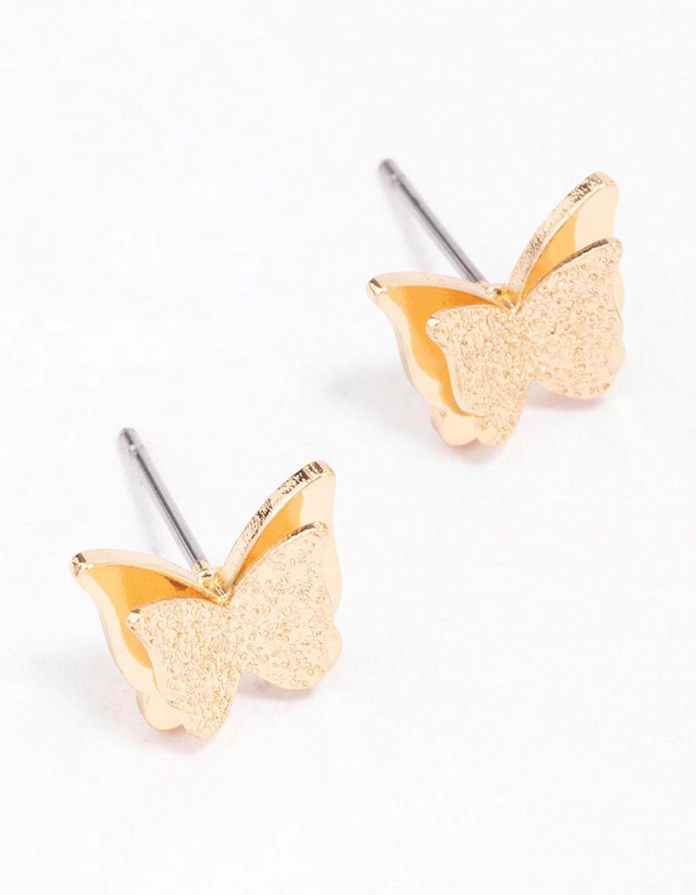 Add a little sparkle to your everyday look with these Gold Sandblast Butterfly Stud Earrings. These dainty stud earrings feature a textured sandblast finish that catches the light beautifully, adding a subtle shimmer to the elegant butterfly design. Perfect for jewellery lovers who adore delicate gold earrings, these studs are versatile enough for any occasion—whether you're dressing up for a party or keeping it casual for brunch. Wear them with a flowy dress for a whimsical vibe or pair them with a sleek blazer for a chic touch. Lightweight and timeless, these butterfly earrings are a must-have addition to your jewellery box!