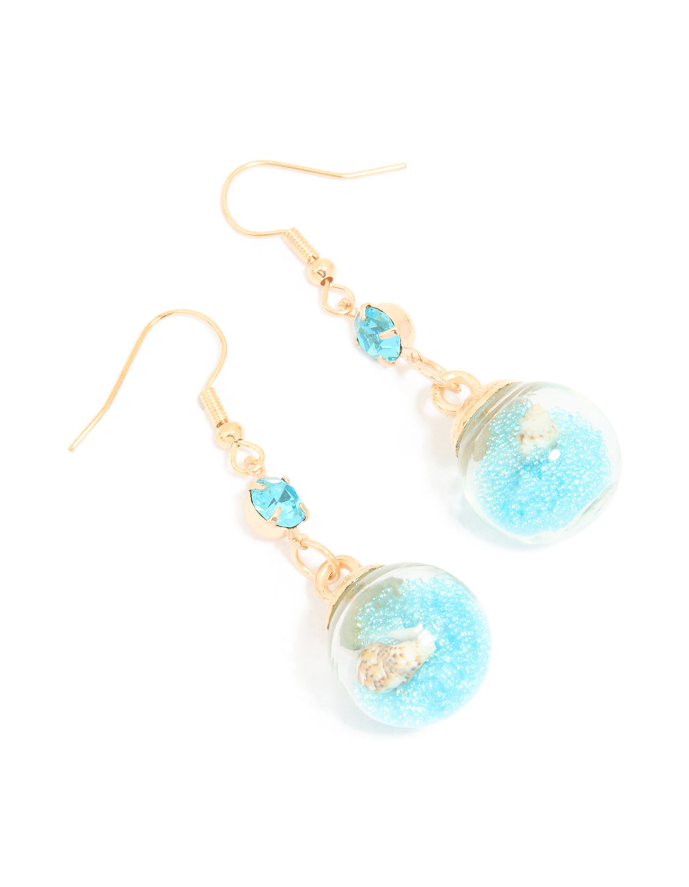 Add a touch of sparkle and seaside charm with these stunning Gold Shell Diamante Shaker Drop Earrings. Perfect for lovers of unique jewellery, these drop earrings feature a playful shaker design with a blue diamante drop top and a dangling ball filled with blue glitter and delicate shells. The gold finish adds a luxe feel, making these earrings a standout accessory for any occasion. Whether you’re dressing up for a summer party, a casual brunch, or a night out, they’ll add a fun, breezy vibe to your look. Pair them with a floaty dress for a beachy feel or add a pop of sparkle to a chic blazer ensemble. Lightweight and eye-catching, these earrings are a must-have for anyone who loves playful, elegant accessories.