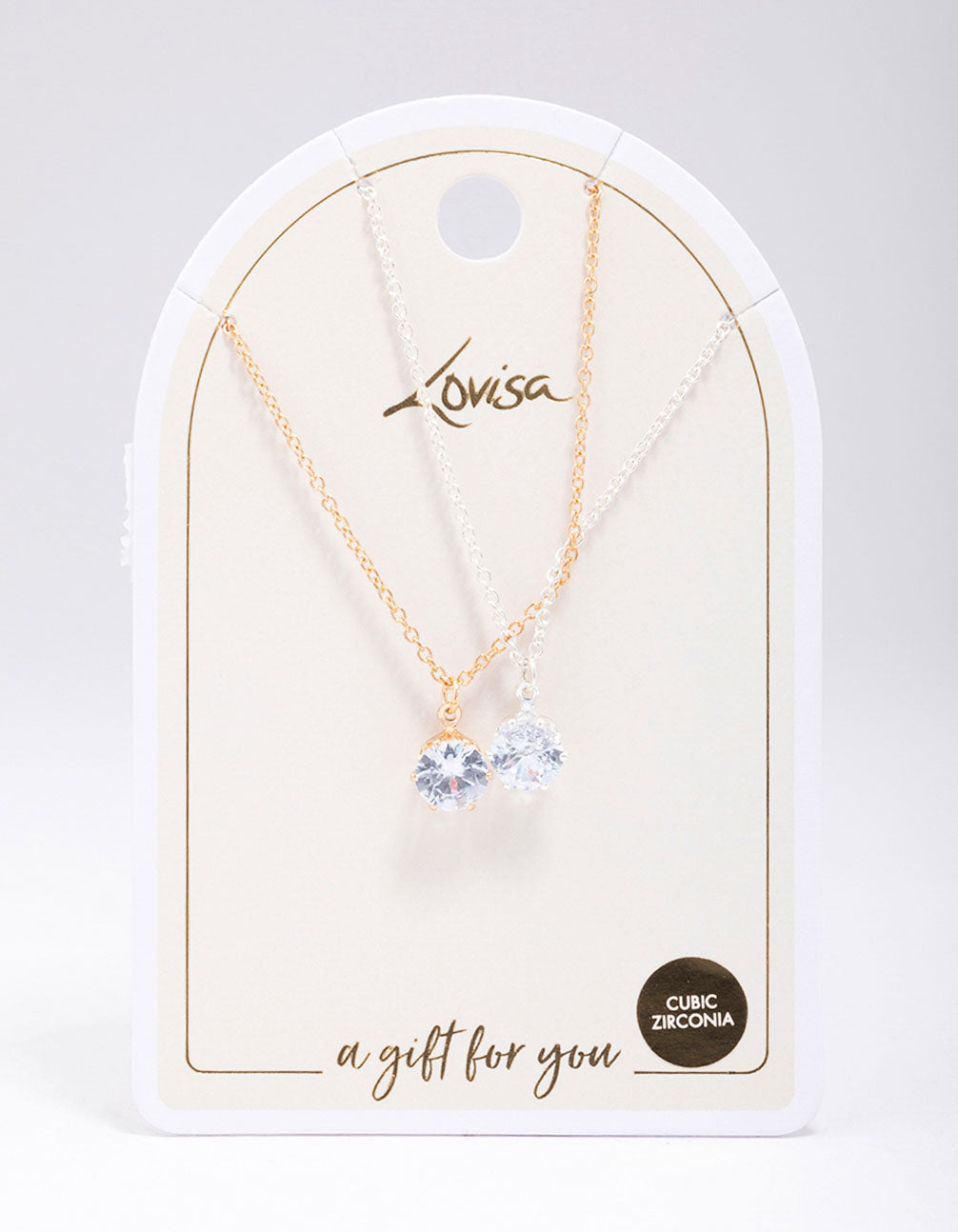 Add a touch of timeless elegance with this Gold & Silver Mixed Metal Solitaire Crystal Necklaces Pack. Featuring a classic solitaire diamante pendant on delicate gold and silver chains, this set is perfect for layering or wearing solo. Whether you're dressing up for a dinner date or adding sparkle to your everyday look, these versatile necklaces are a must-have. Pair them with a chic blouse or a cosy jumper for effortless style. Ideal for gifting or treating yourself, these pendant necklaces are a stunning choice for any jewellery lover.