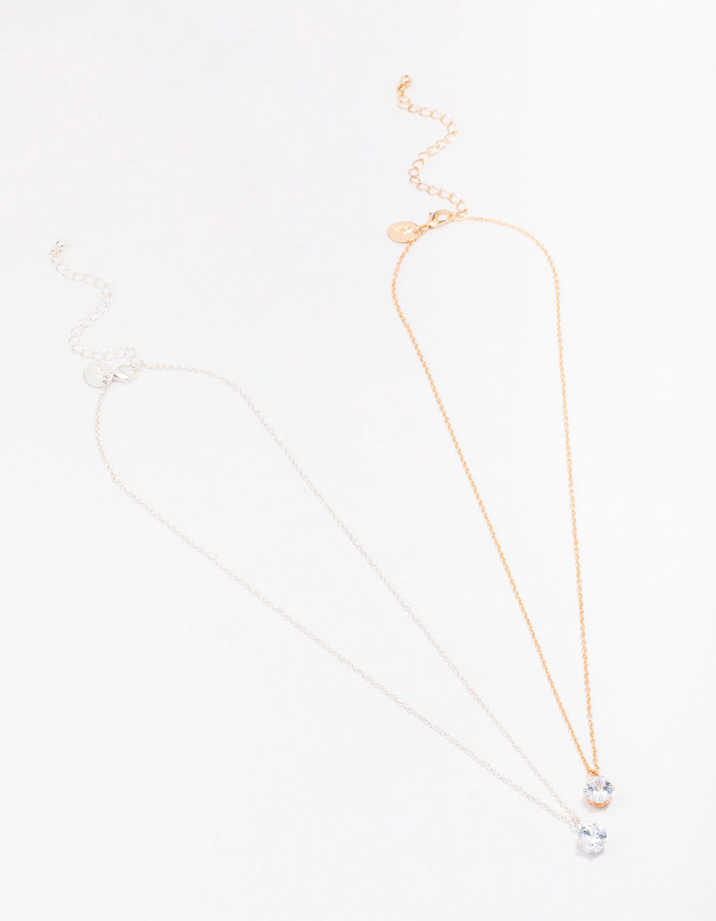 Gold & Silver Mixed Metal Solitaire Crystal Necklaces 2-Pack