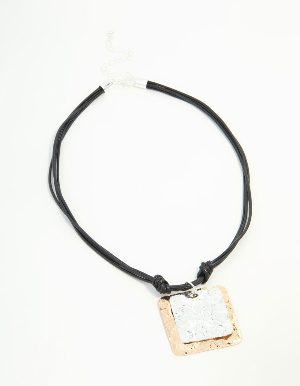 Get ready to embrace the best of mixed metals and playful style with this fabulous necklace. Featuring a textured gold and silver pendant paired with a fun cord chain, it's the perfect accessory to add flair to any outfit.
