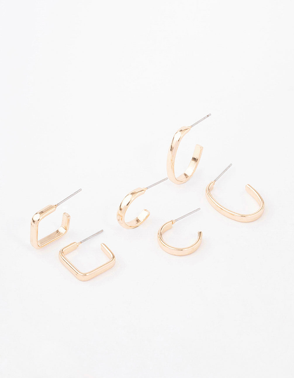 • Gold Square & Oval Huggie Earring 3-Pack - link has visual effect only