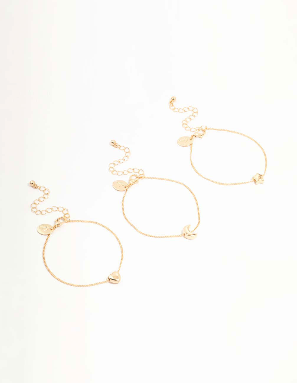Gold Star & Moon & Heart Bracelets 3-Pack