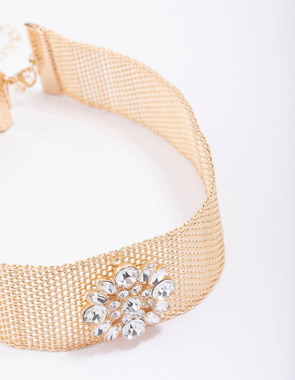Complete your outfit with this eye-catching choker necklace. This choker features a thick, gold mesh band adorned with crystals for a glamorous finish.