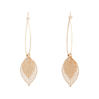 Delicate and highly-detailed, these fine gold tone hoops are complimented with a layering of fine filigree leaf charms.