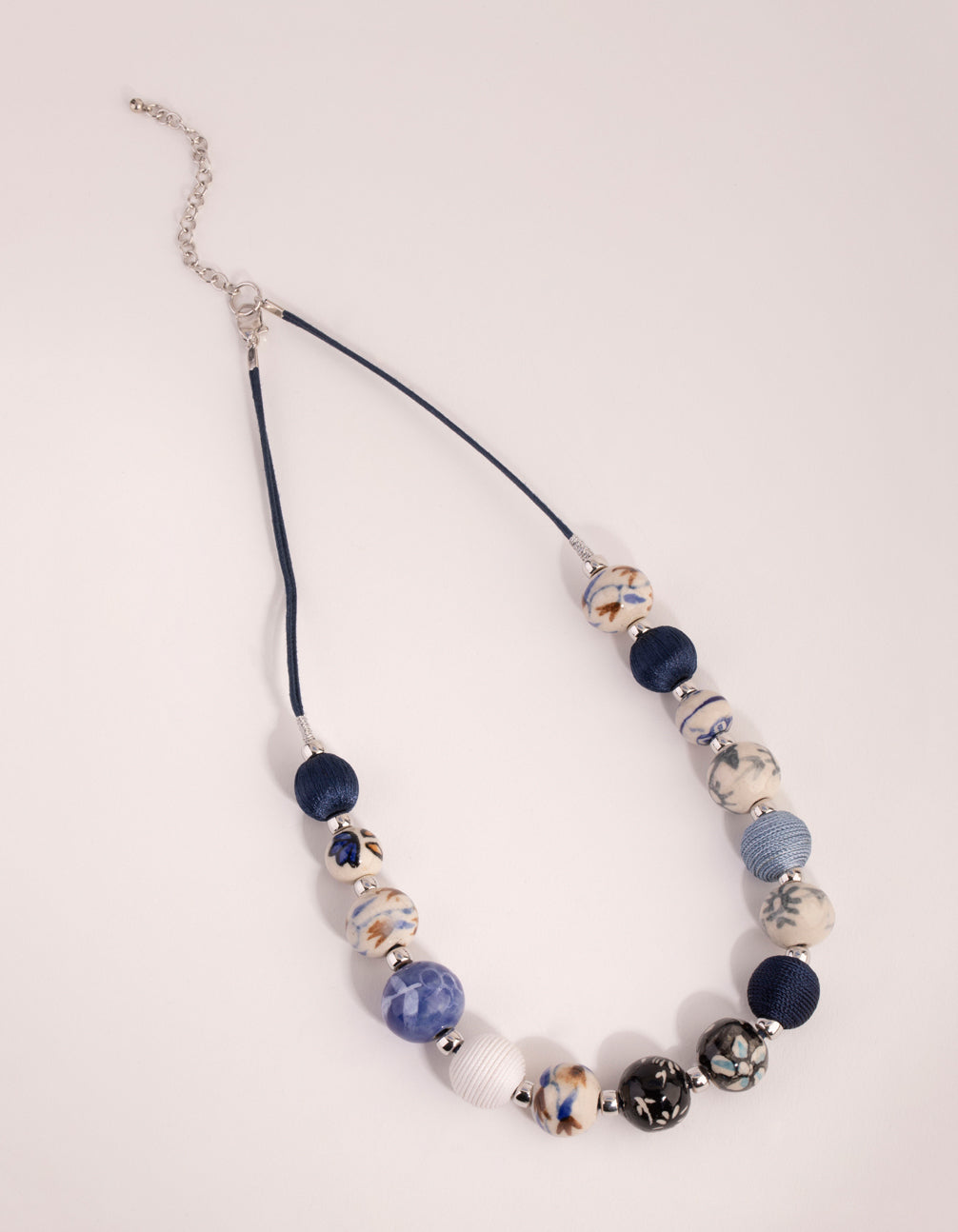 Impress in blues and whites with Santorini Sky: a Lovisa collection inspired by the colours of the seaside city. This lovely necklace features a series of porcelain and thread-wrapped beads in a mix of white, cerulean and navy. The setting is silver toned. This necklace is desinged to be worn long, draped over your ensemble. Pair it with white to channel volcanic seaside vibes.