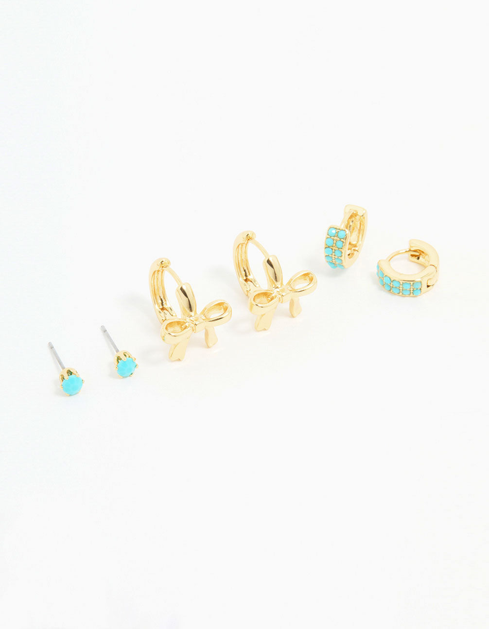 Gold Plated Turquoise Bead & Bow Earrings 3-Pack